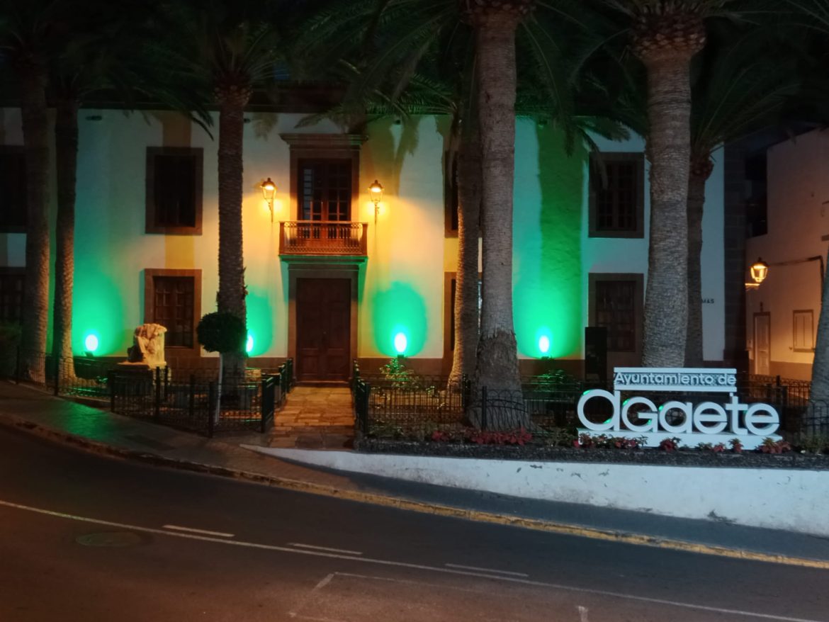 El Ayuntamiento de Agaete ha iluminado este viernes el edificio noble del consistorio de color verde para visibilizar y conmemorar el Día Mundial de la Lucha contra la Esclerosis Lateral Amiotrófica (ELA), que se celebra cada 21 de junio.