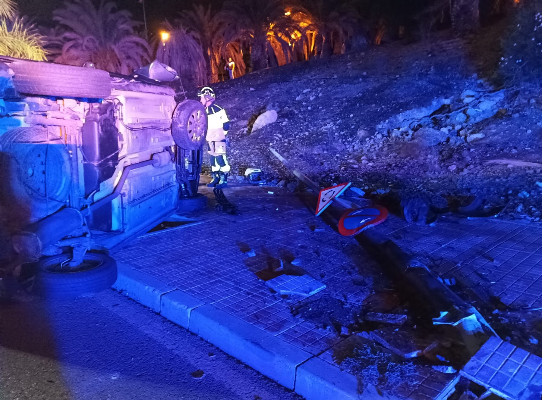 Efectivos del Parque de Bomberos de San Miguel de Abona intervinieron en un accidente de tráfico ocurrido en la avenida San Francisco, en el municipio de Arona, tras el vuelco de un vehículo.