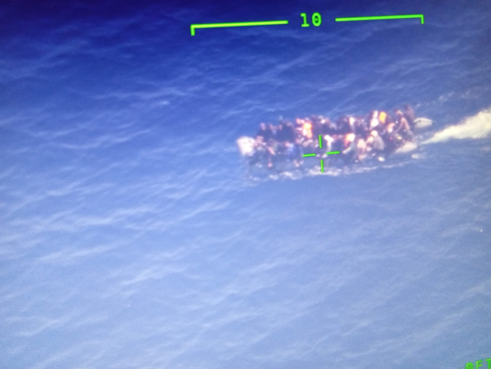 Salvamento Marítimo ha compartido una imagen captada desde el avión Sasemar 103 en la que se aprecia la embarcación neumática avistada en el mar.