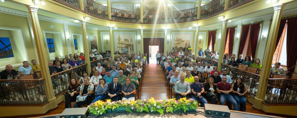 Teodoro Sosa, alcalde de Gáldar; Julio Mateo Castillo, primer teniente de alcalde y concejal de Presidencia; e Idaira Mateos, concejala de Recursos Humanos, firmaron los contratos en el Teatro Consistorial con los más de 150 empleados públicos cuyas plazas han sido estabilizadas. El primer edil agradeció públicamente el trabajo realizado por las Concejalías y el personal implicado en este proceso: «Ha sido un trabajo largo, de varios años y que se ha ejecutado de manera acertada, transparente y equitativa», indicó el primer edil. «Todo el proceso se ha desarrollado en los plazos establecidos por la Ley y tiene mucho mérito porque no va a suponer un problema ni para el Ayuntamiento ni para los trabajadores y sus familias», añadió.