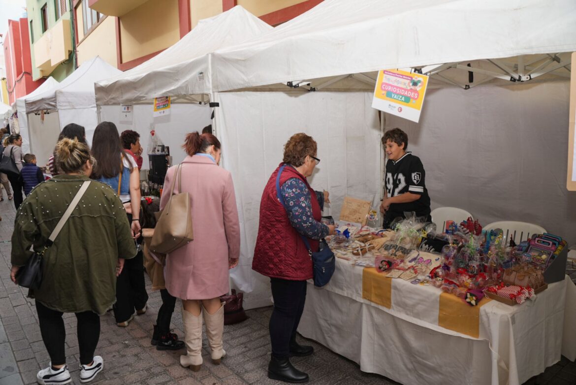 A las 9.30 horas se abrieron las puertas para dar cobijo a la Feria de Artesanía, en la que se expusieron y comercializaron productos de oficios artesanos y/o creativos. 19 de los 28 puestos estuvieron ubicados en la calle Harimaguadas y el resto en el patio del Club del Mayor de Gáldar.