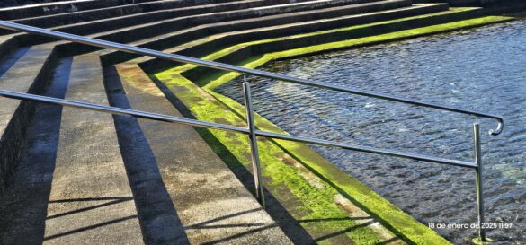 El accidente ocurrió en los escalones cubiertos de musgo verde, una zona que se vuelve especialmente peligrosa debido a la acumulación de humedad. Aunque la piscina fue renovada recientemente, incluyendo la instalación de una nueva barandilla, no se implementaron rejillas de tramex en los escalones, una medida que los usuarios consideran esencial para evitar resbalones.