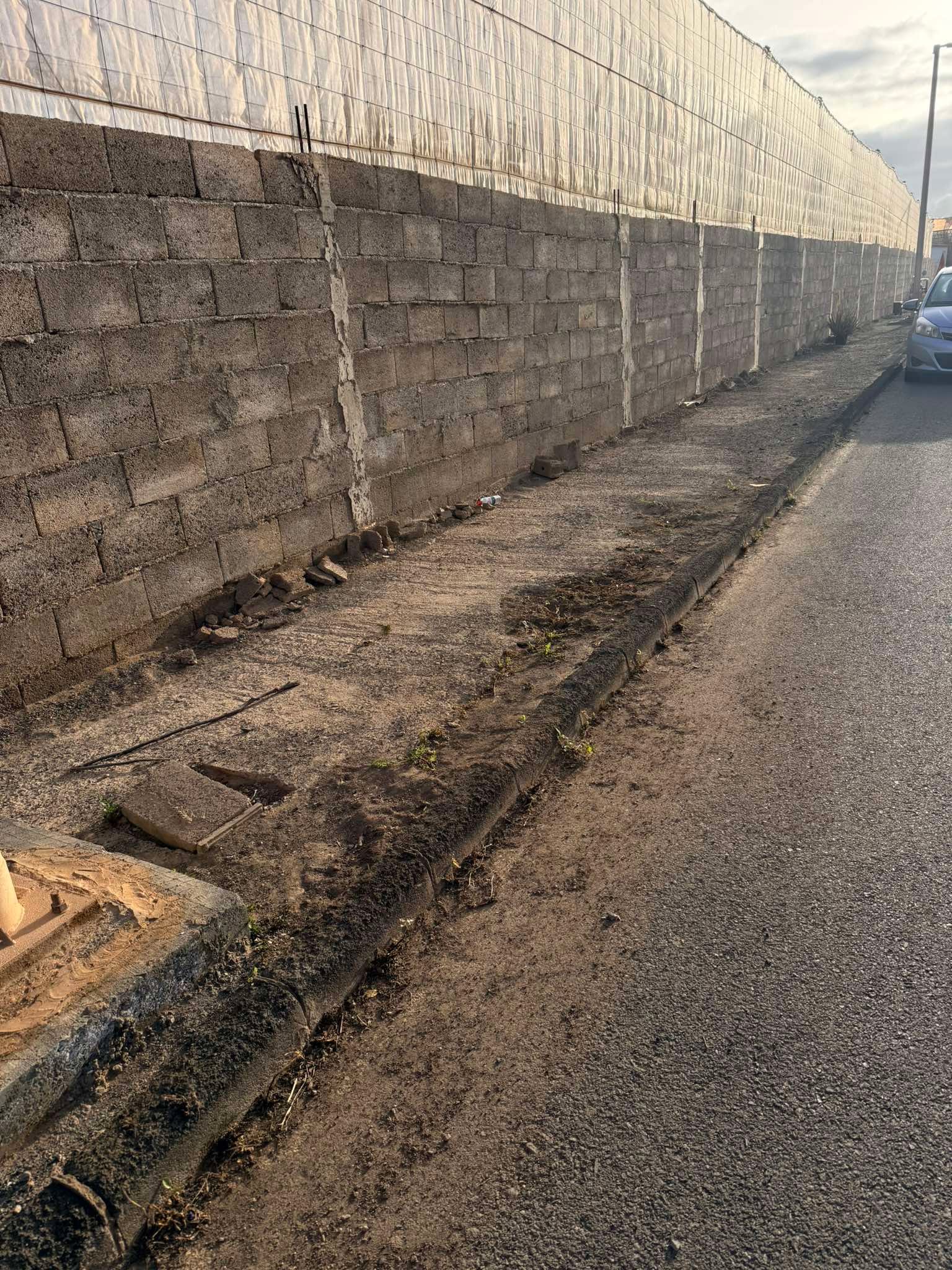 Según denuncian los residentes, desde hace años vienen solicitando la adecuación de las aceras sin que, hasta el momento, se haya dado una solución efectiva por parte de las administraciones competentes. En la actualidad, uno de los márgenes de la carretera presenta únicamente bordillos con un acabado incompleto de cemento, mientras que el otro lado carece de acondicionamiento adecuado, con tramos de tierra y bordillos ejecutados de forma parcial.