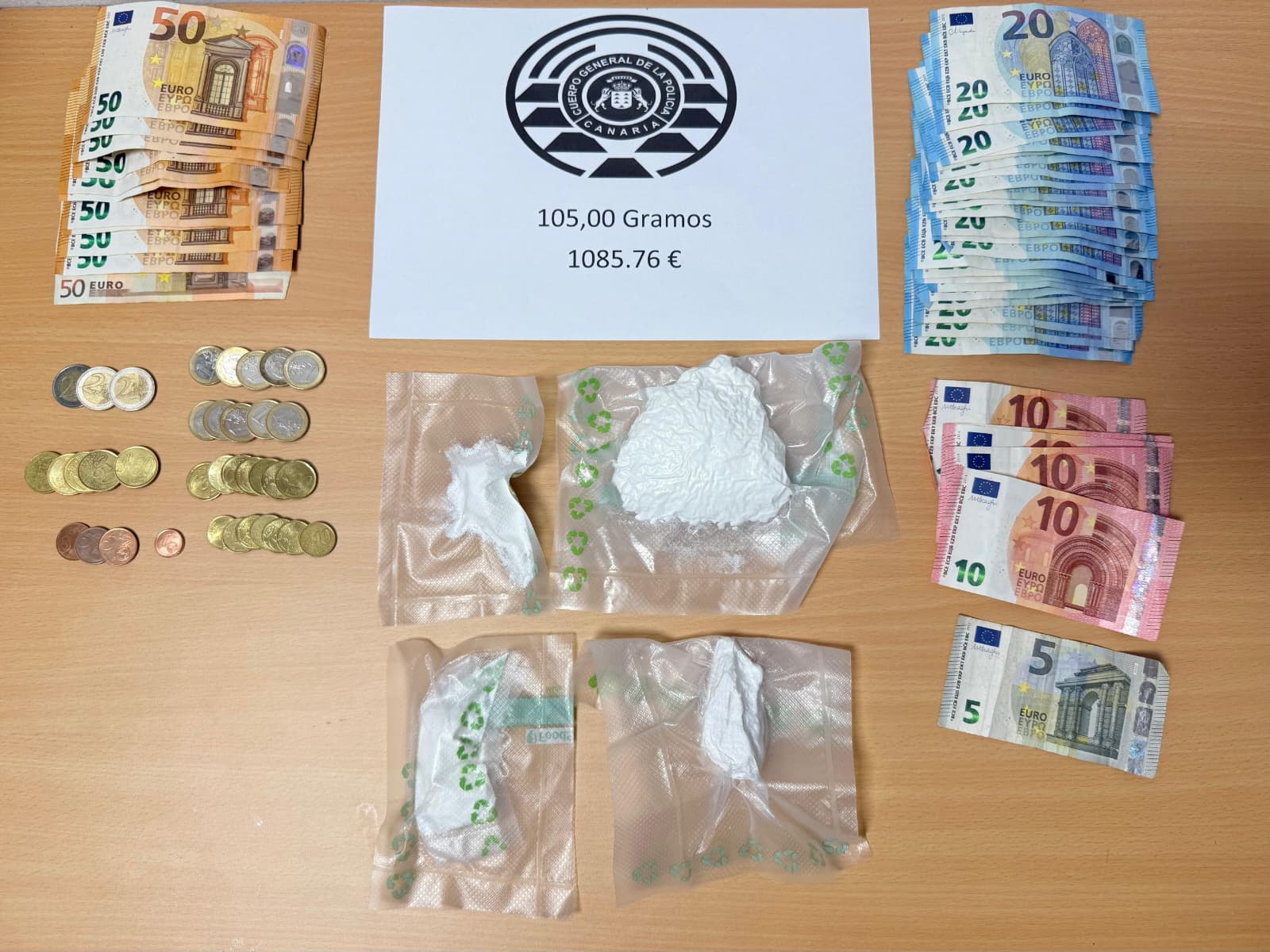 Detenido en Agüimes un joven de 19 años con más de 100 gramos de cocaína y 1.000 euros en efectivo