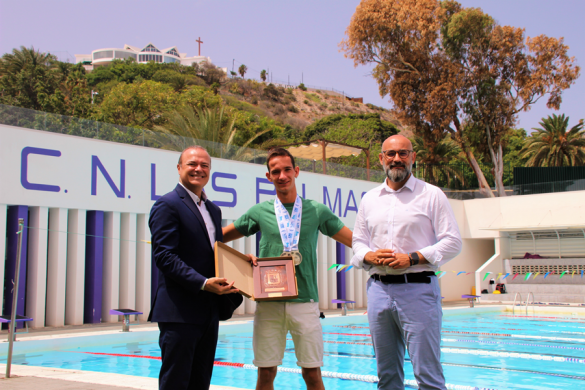 El acto se llevó a cabo en las instalaciones del Club Natación Las Palmas, donde se formó el deportista y en el que el Consistorio capitalino ha realizado “una importante remodelación en todos sus equipamientos e infraestructuras, superando los dos millones de euros en inversión para mejorar un equipamiento icónico y de referencia en la ciudad”, según reconoció el regidor capitalino.