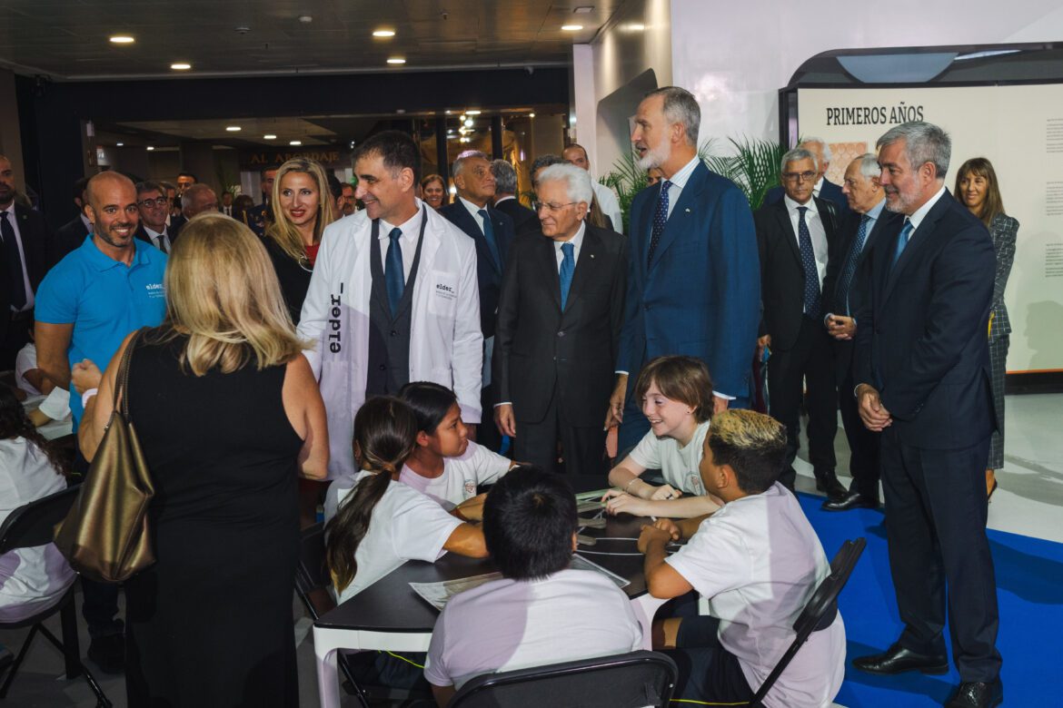 Su Majestad el Rey de España Don Felipe VI, acompañado por el Presidente de la República Italiana, Sergio Mattarella, comprobaron los contenidos y la actividad diaria del Elder este viernes 20 de septiembre, junto a la presencia de un centenar de escolares, que estaban desarrollando talleres prácticos alusivos a Agustín de Betancourt, cuyo bicentenario de su muerte se conmemora en este 2024, y el cual realizó una extraordinaria labor en el ámbito de la ingeniería civil, obteniendo el reconocimiento de destacadas autoridades políticas y científicas de la ‘Europa de las Luces’.