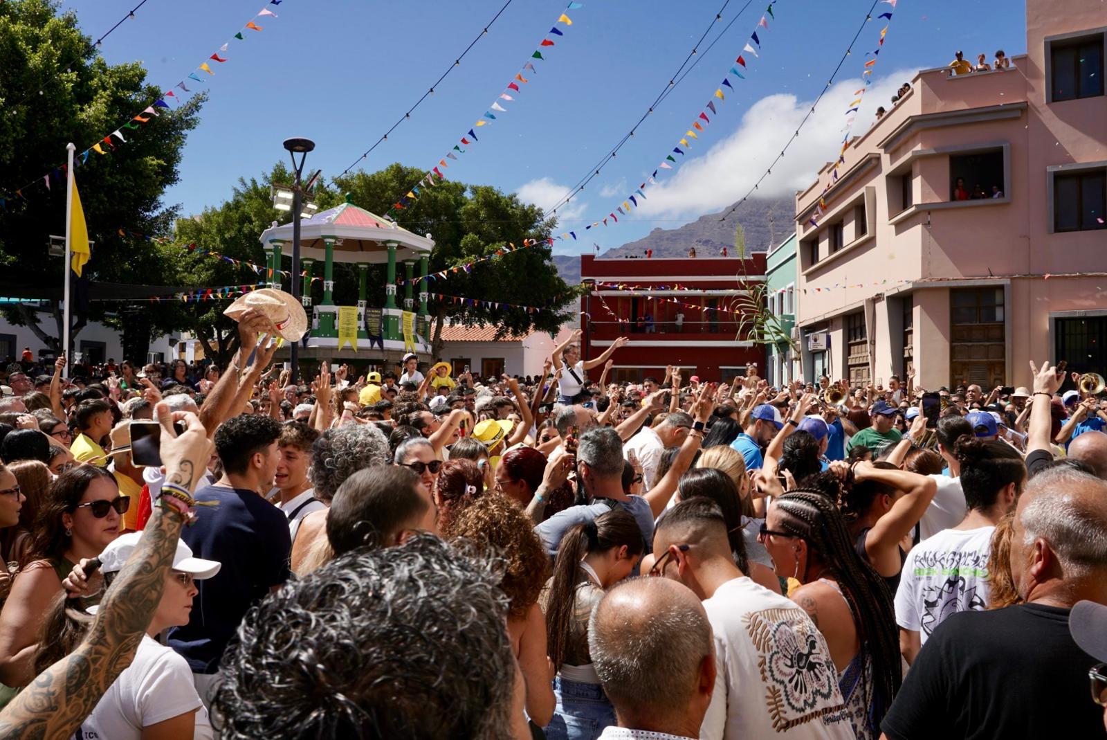 A las doce en punto, el sonido de las campanas, acompañado por la Charanga La Aldea y la Sabrosa Banda La Aldea, hizo vibrar a toda Gran Canaria, avisando así a los cientos de asistentes congregados en torno a la iglesia de San Nicolás, para recordar que La Aldea entra en una de sus semanas más esperadas.