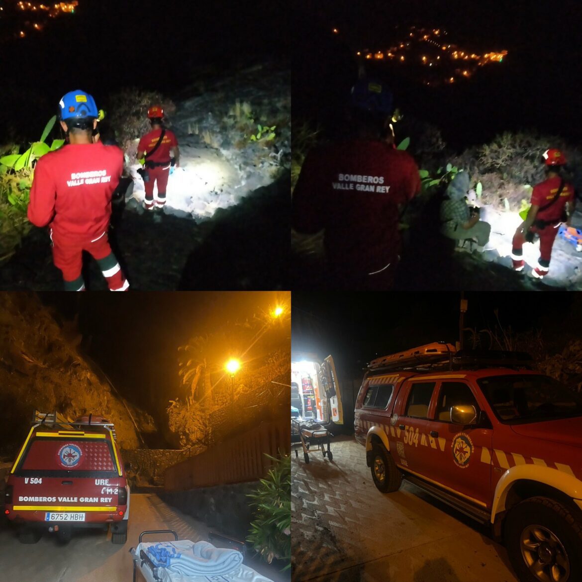 Los Bomberos del Valle Gran Rey fueron activados por el servicio de emergencias 112 Canarias para llevar a cabo un complejo rescate en el sendero de la Ermita de Los Reyes a la de Guara.