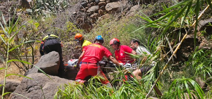 Bomberos de Valle Gran Rey y rescatadores del GES localizaron al herido y lo evacuaron en helicóptero hasta la helisuperficie de San Sebastián de La Gomera. Allí, personal del Servicio de Urgencias Canario (SUC), desplazado en una ambulancia de soporte vital básico, le prestó asistencia sanitaria y procedió a su traslado al Hospital Nuestra Señora de Guadalupe.