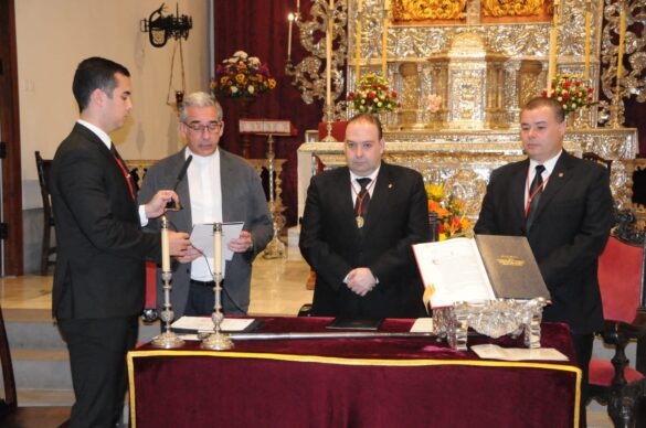 El Real Santuario del Santísimo Cristo de La Laguna acogió ayer por la tarde la solemne ceremonia de toma de posesión del nuevo Esclavo Mayor, Eladio Alexis Díaz Marrero, junto con la nueva Junta de Gobierno de la Pontificia, Real y Venerable Esclavitud del Santísimo Cristo de La Laguna.