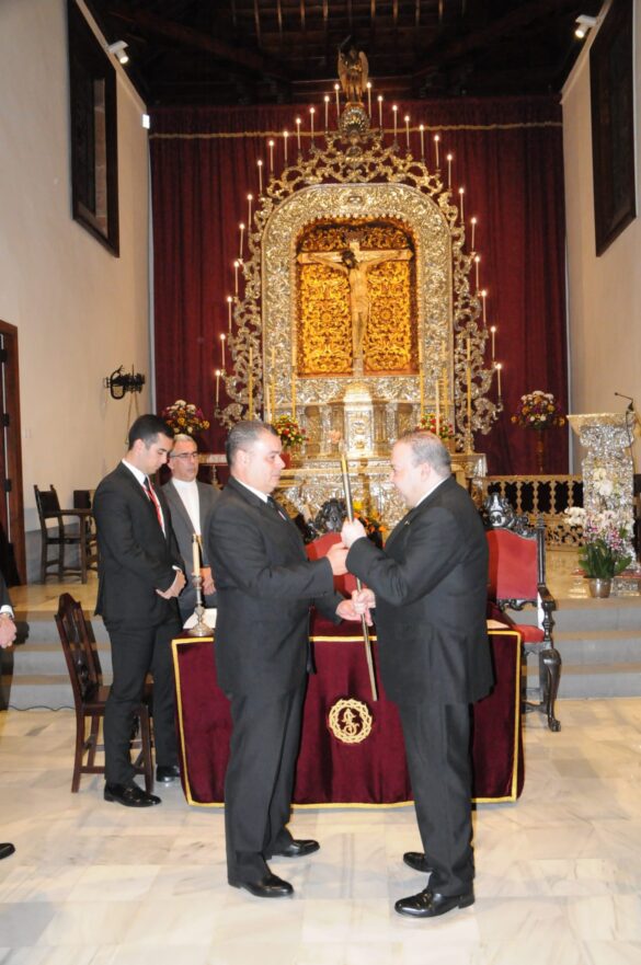 El acto dio inicio a las 20:00 horas con la celebración de la Santa Misa ante el venerado altar que alberga la imagen del Santísimo Cristo y contó con la presencia de miembros de la Corporación municipal. Posteriormente, se procedió a la ceremonia de toma de posesión, en la cual, tras la lectura de la aprobación por parte del Administrador Diocesano de la Diócesis de San Cristóbal de La Laguna, Antonio Manuel Pérez Morales, el Esclavo Mayor saliente, Francisco Tubal Morales González, entregó el bastón de plata a su sucesor, Eladio Alexis Díaz Marrero. Este, a su vez, confirió posesión a los demás miembros de la nueva Junta de Gobierno, quienes pronunciaron el juramento de fidelidad a la Iglesia y a los estatutos de la asociación.