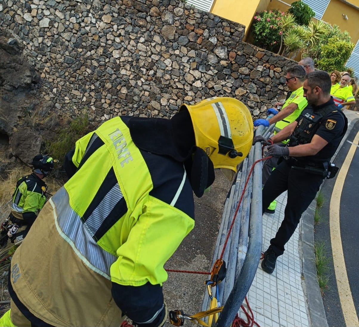 El incidente ocurrió sobre las 17:52 horas. El CECOES 1-1-2 activó de inmediato los recursos de emergencia tras recibir el aviso. Bomberos del Consorcio de Tenerife localizaron y rescataron al afectado, que presentaba varios traumatismos.