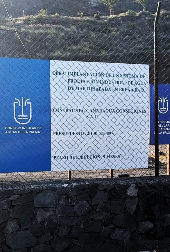 La asociación Agua para La Palma rechaza la “injustificada e irresponsable” instalación de la primera planta desaladora de agua marina permanente para riego en la isla, que el Cabildo de La Palma, a través de su Consejo Insular de Aguas (CIALP), ya ha iniciado en Breña Baja.