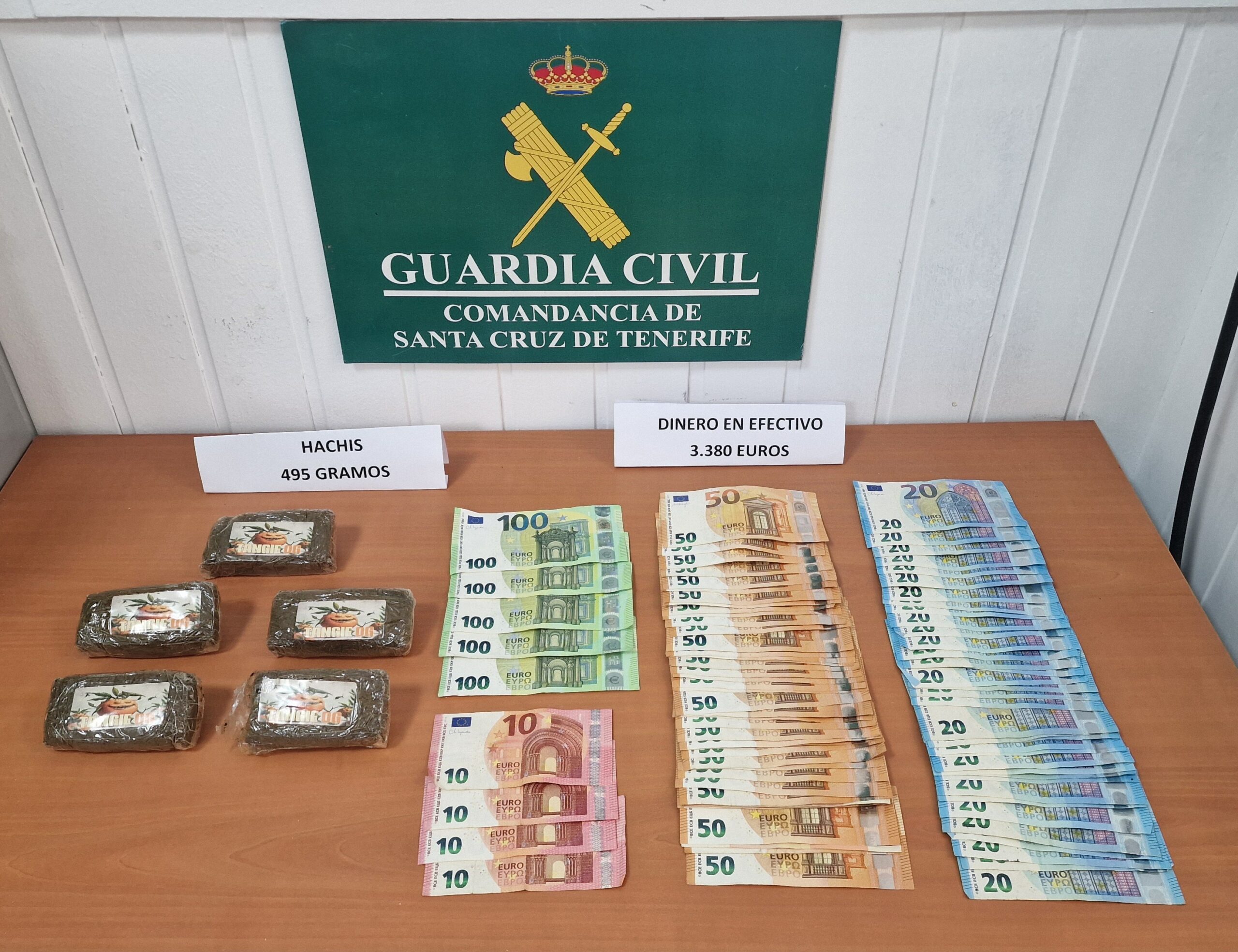 Un varón pillado en La Palma portando casi 500 gramos de hachís y más de 3.000 euros en efectivo