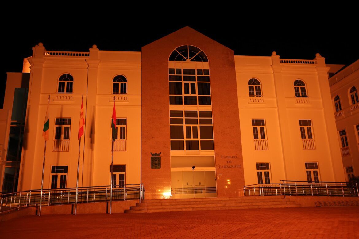El Cabildo de Lanzarote, a través del Área de Bienestar Social, iluminó la noche del sábado 15 de febrero la fachada de la Institución insular de color naranja, con motivo del Día Internacional del Cáncer Infantil, que se celebró ese mismo día.