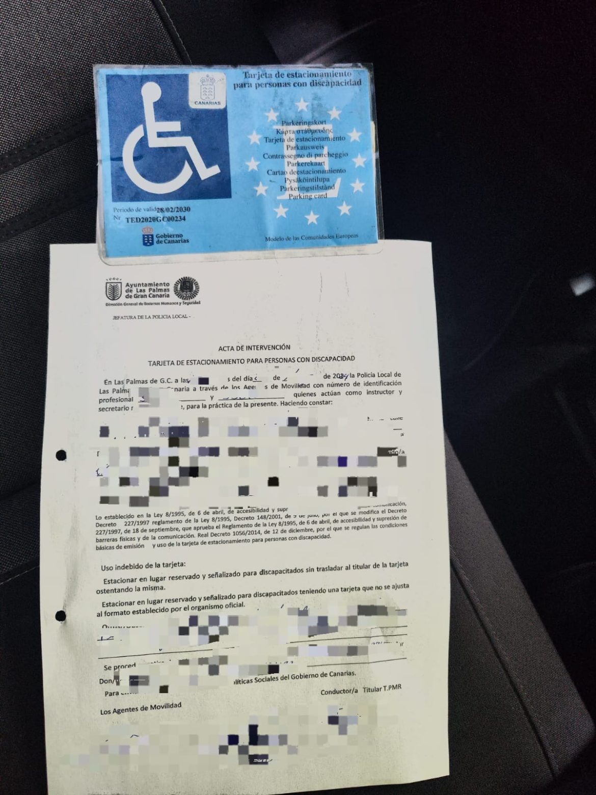 Agentes de Movilidad de Las Palmas intervinieron en la zona hospitalaria con un conductor que hacía uso de la tarjeta PMR de un fallecido.