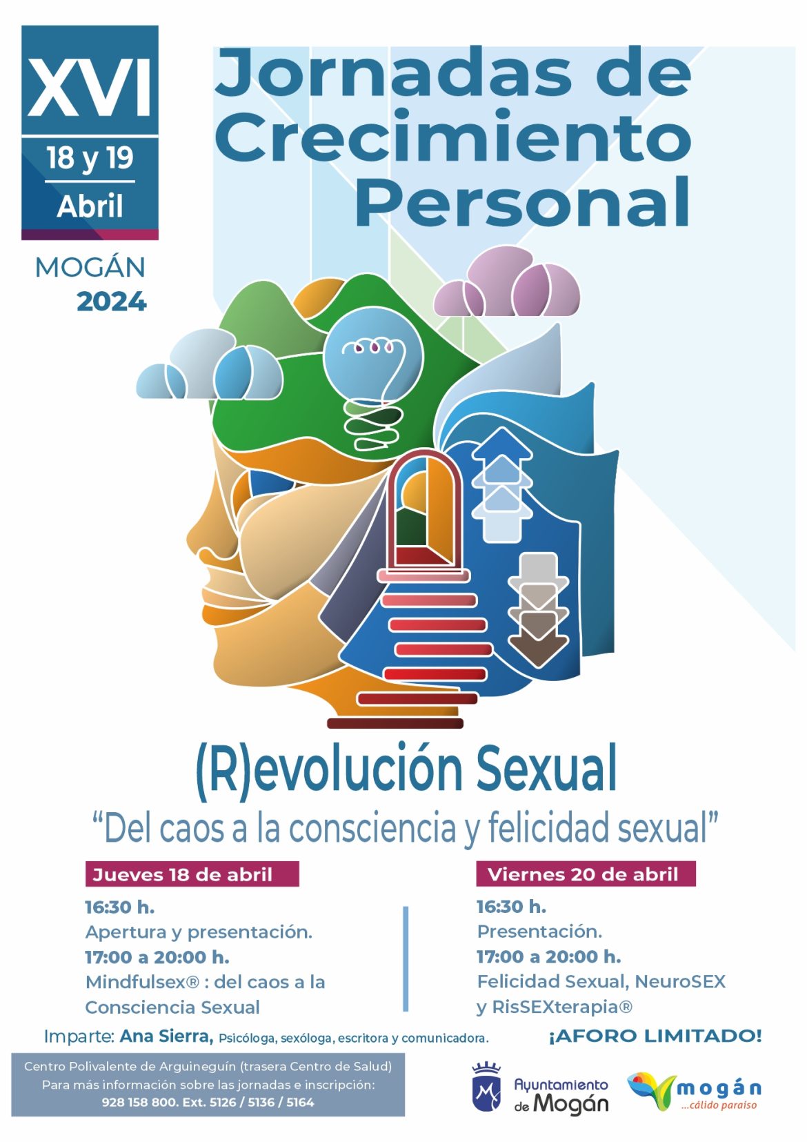 La Concejalía de Servicios Sociales del Ayuntamiento de Mogán, a través del Servicio de Atención Psicológica, organiza la decimosexta edición de las Jornadas de Crecimiento Personal de Mogán, que tendrán lugar el 18 y 19 de abril y se centrarán en la sexualidad consciente de la mano de Ana Sierra, psicóloga, sexóloga clínica, escritora y comunicadora.