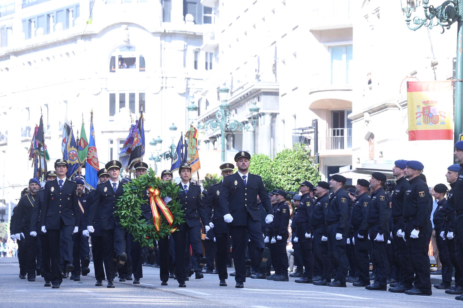 La celebración ha incluido un acto “in memoriam” en honor a los agentes fallecidos en acto de servicio y una formación dinámica en la que intervinieron más de 60 vehículos de unidades motorizadas, un escuadrón de caballería y 3 helicópteros y cinco drones de la Unidad Aérea de la Policía.