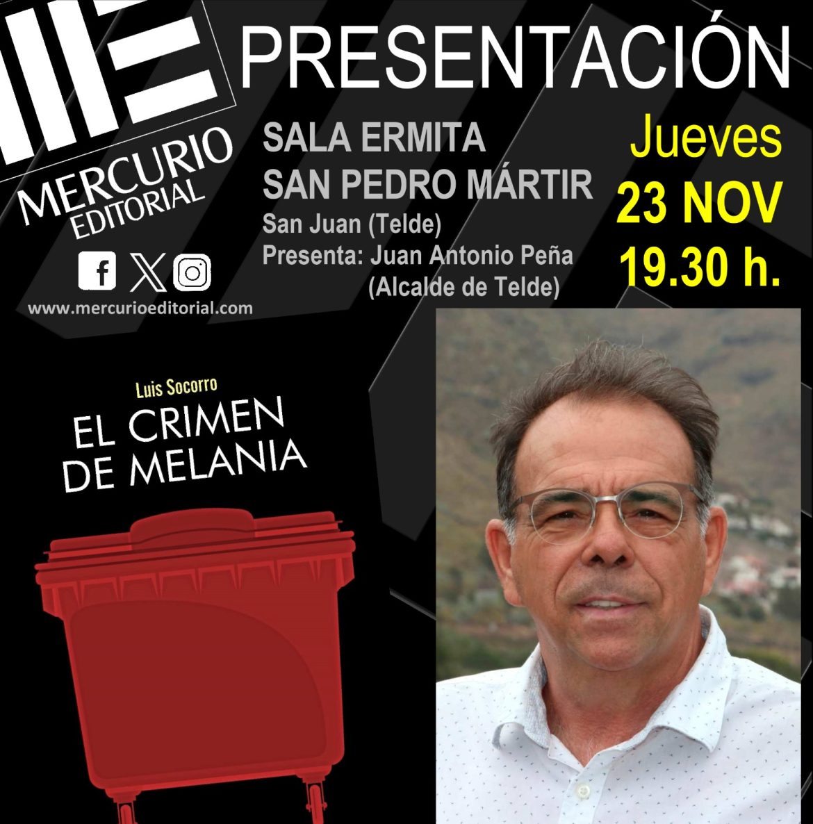 El alcalde de Telde, Juan Antonio Peña, será el encargado de presentar este jueves, a las 19.30 horas en la Ermita San Pedro Mártir, El crimen de Melania, la primera novela del ilustre periodista Luis Socorro. La obra está inspirada en el caso real crimen del contenedor, acontecido en la capital grancanaria en enero de 1994 y que conmocionó a toda la sociedad canaria. Aun así, la trama, los perfiles de los protagonistas y las pesquisas policiales son producto de la imaginación del autor.