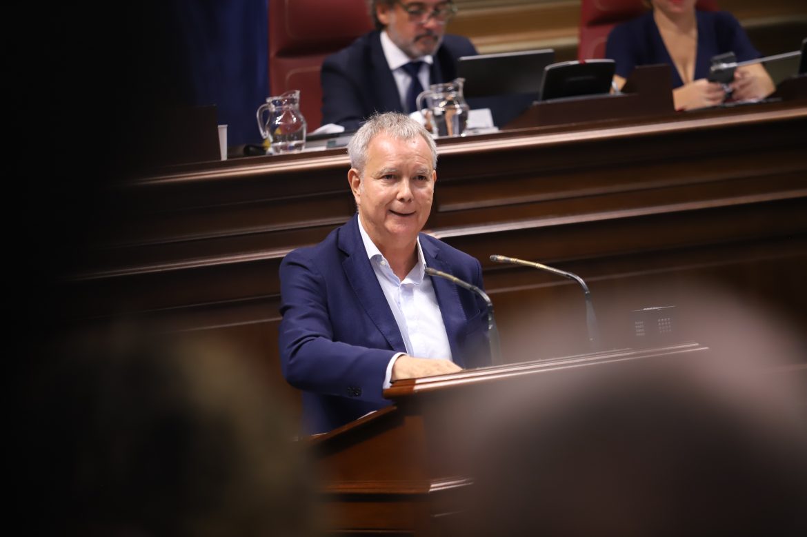 El portavoz del Grupo Parlamentario Socialista, Sebastián Franquis, ha acusado este martes [7] en el Pleno de la Cámara regional al vicepresidente del Gobierno canario y presidente del Partido Popular en Canarias, Manuel Domínguez, por no condenar el discurso “xenófobo y del odio” mostrado por los populares y VOX sobre la derivación de migrantes desde Canarias a la Península, y le ha exigido que condene “con contundencia” la insolidaridad con el Archipiélago expresada por varios portavoces autonómicos del PP.