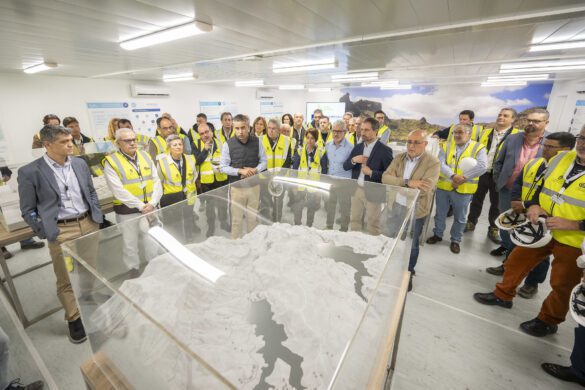 Morales y el resto del grupo se adentraron en el corazón de las fases en ejecución, tareas en las que toman parte alrededor de 800 profesionales que hacen posible que el proyecto evolucione en tiempo y forma. Hace apenas unos días se completó la conexión de la excavación de los túneles de acceso a la central en una operación de gran complejidad técnica para la unión del túnel de acceso principal (Las Filipinas) y del túnel de acceso secundario (presa de Soria). Por ellos discurrirá parte de la conexión de alta tensión y la tubería de impulsión que conducirá el agua desde la desaladora a la presa de Soria.