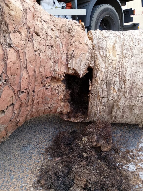 El Ayuntamiento ha actuado desde el rigor y el compromiso con la seguridad, ante una situación de peligro, protegiendo a los usuarios y al propio patrimonio. El consistorio lamenta verse obligado a retirar estas dos palmeras, pero su