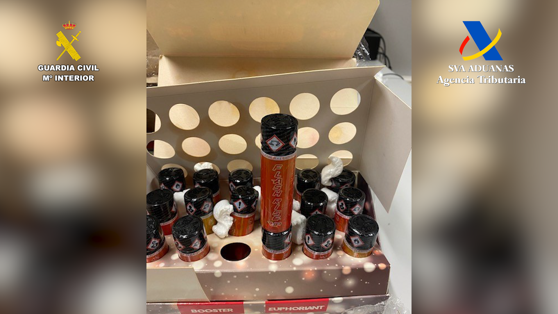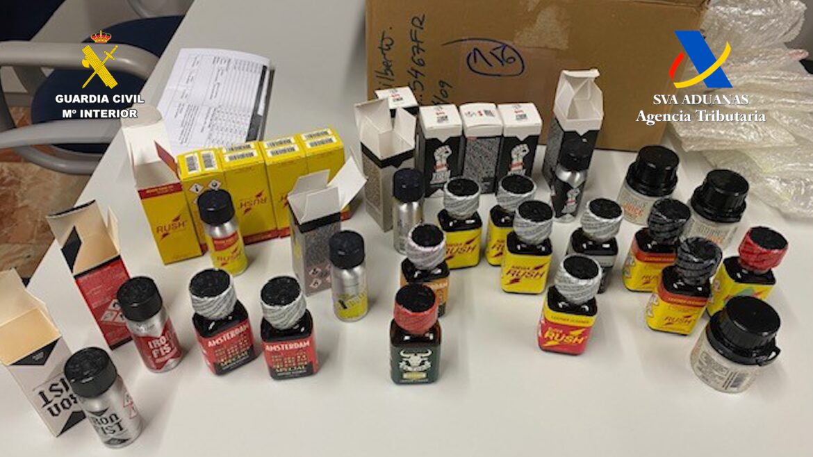 Agentes de la Guardia Civil pertenecientes a la Sección Fiscal y Fronteras del Puerto de Santa Cruz de Tenerife, junto a Funcionarios de Vigilancia Aduanera de la Agencia Tributaria, han intervenido más de 13.800 dosis de la droga conocida como “Popper”, remitida a través de paquetería postal desde Francia y Portugal, mediante siete envíos distintos a lo largo de los últimos cuatro meses. Por estos hechos se investiga a siete personas, que eran las receptoras de esta peligrosa sustancia estimulante.