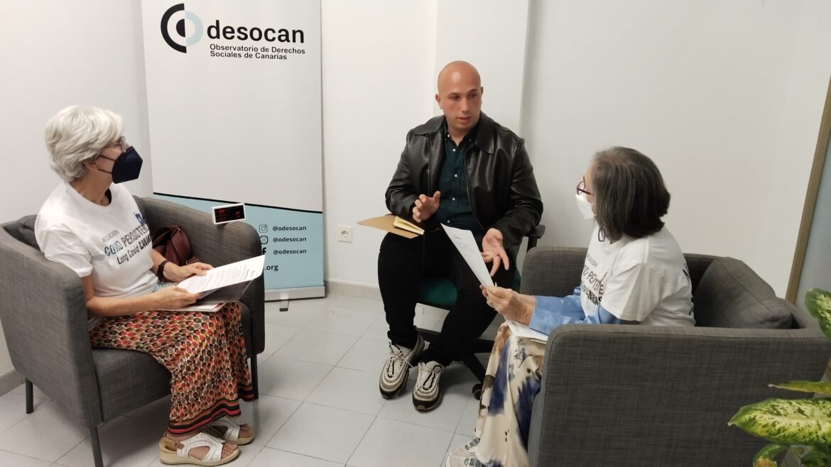 La directora del Observatorio de Derechos Sociales (ODESOCAN), Emma Colao, se reunió con representantes de la Asociación “Covid Persistente Canarias” quienes denuncian sufrir un abandono por parte de la Consejería de Sanidad desde su creación en 2020. Estiman que más de 70.000 personas podrían estar sufriendo esta enfermedad en Canarias, por lo que exigen que la Administración cumpla con su compromiso de crear una Unidad de atención específica en los hospitales de Tenerife y Gran Canaria.