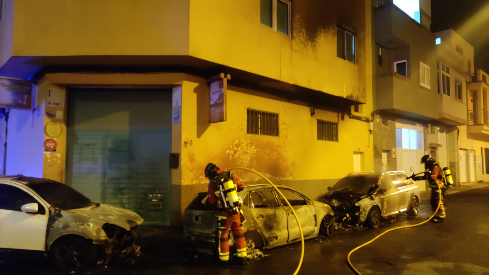 Durante la madrugada de este viernes, se produjo un incendio en el barrio de Las Torres, en Las Palmas de Gran Canaria, que afectó a tres vehículos estacionados en la vía pública.