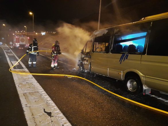 Incendio de microbus, esta mañana, en la GC-1, a la altura del centro comercial El Mirador, interviniendo efectivos del parque zonal de Vegueta, sin personas afectadas, colabora