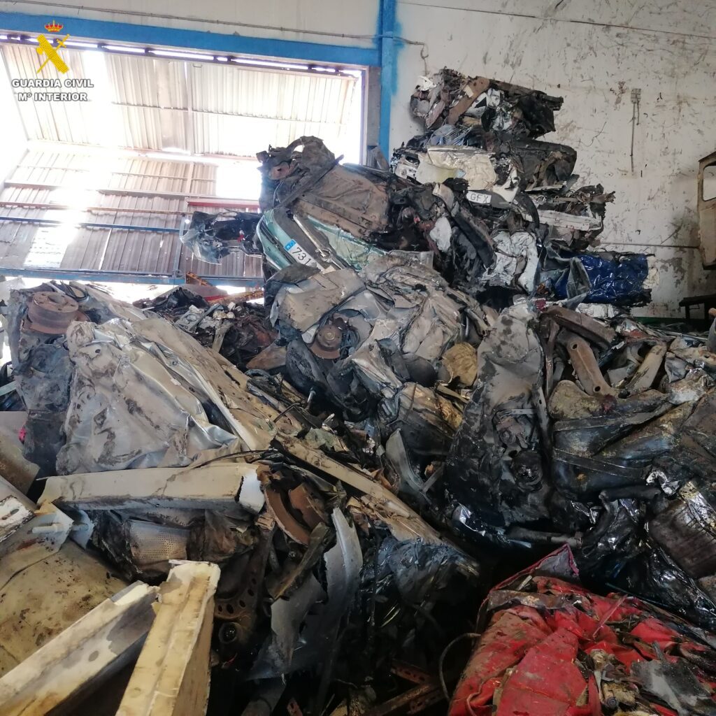 40.000 metros cuadrados. Estas instalaciones operaban bajo la cobertura de desguaces autorizados ubicados en zonas industriales, los cuales emitían la documentación falsificada mientras parte de los vehículos eran trasladados sin descontaminar o solo parcialmente tratados.