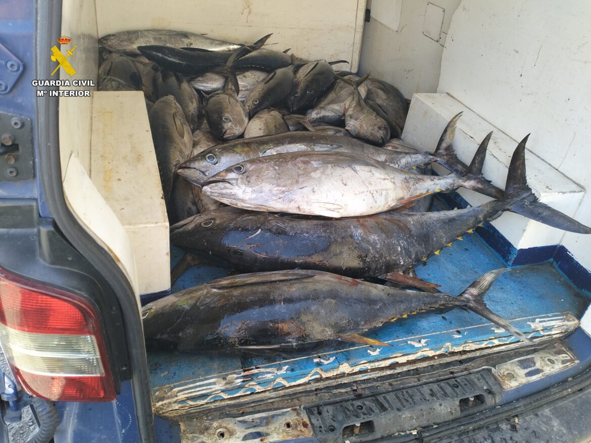 Durante la inspección se comprueba que las condiciones de transporte de estos productos pesqueros no son las idóneas, al estar con bolsas de hielo comercial, gran cantidad de agua y sangre en el interior de los recipientes. Se procede a pesar el pescado transportado, con un peso total de 446 kilos, momento en el que se puede verificar, que además de atunes rabiles, en las neveras se transporta atún sierra, pargos y bocinegro y que en la zona de carga del vehículo, junto al pescado, había tres garrafas plásticas con 50 litros de combustible diésel.