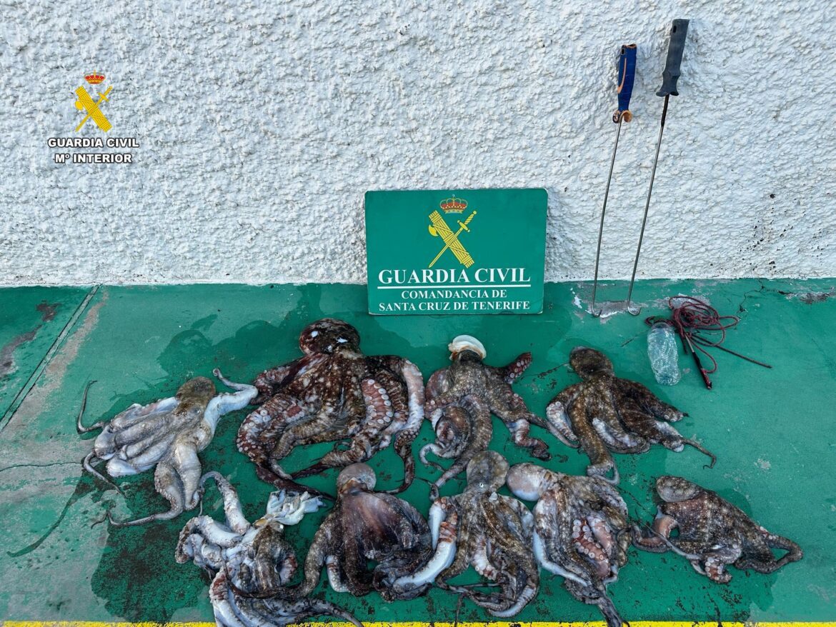 Además, los agentes de la Guardia Civil les incautaron un total de 9 pulpos, con un peso aproximado de más de 11,5 kg capturados de forma ilícita.