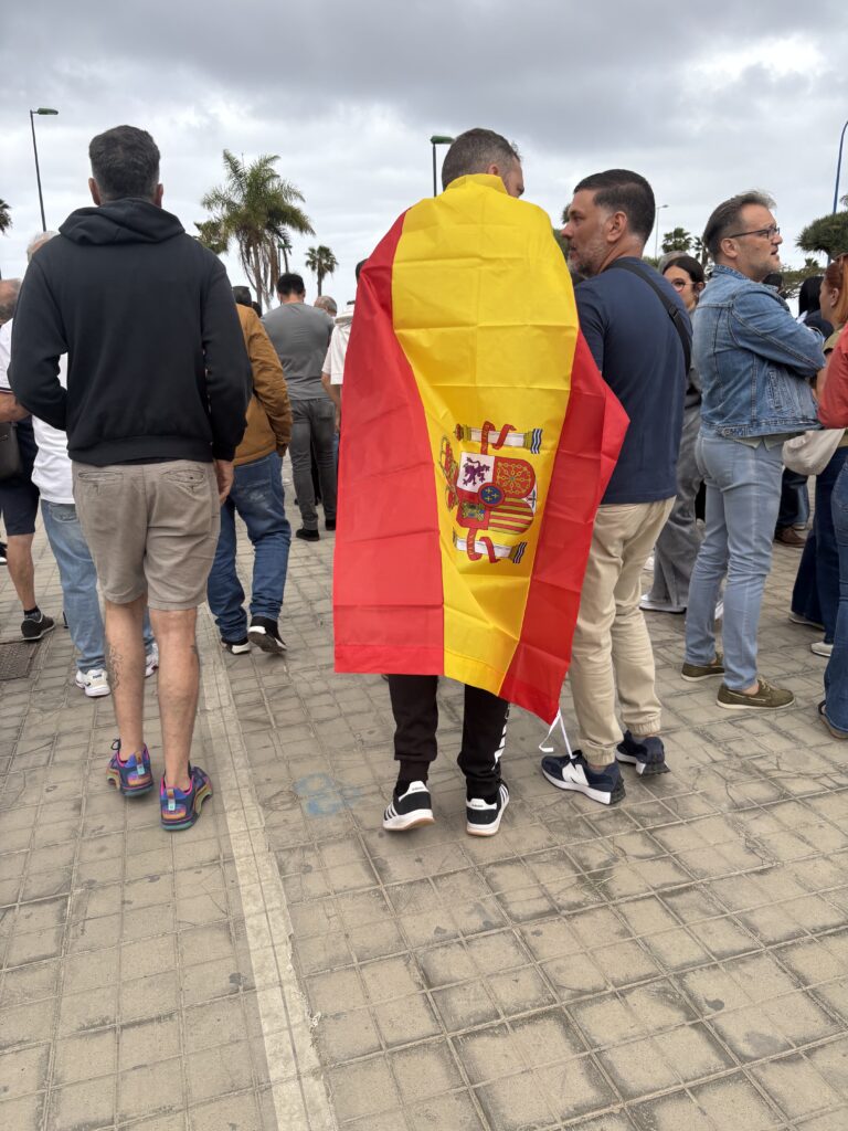 La convocatoria, difundida de forma espontánea a través de redes sociales, logró reunir a una multitud que portaba banderas de España y de Canarias, coreando consignas como “¡Fuera delincuentes!” y “Canarias se defiende”. El ambiente, cargado de indignación pero mantenido en calma, fue vigilado por efectivos de seguridad para garantizar el desarrollo pacífico del acto.