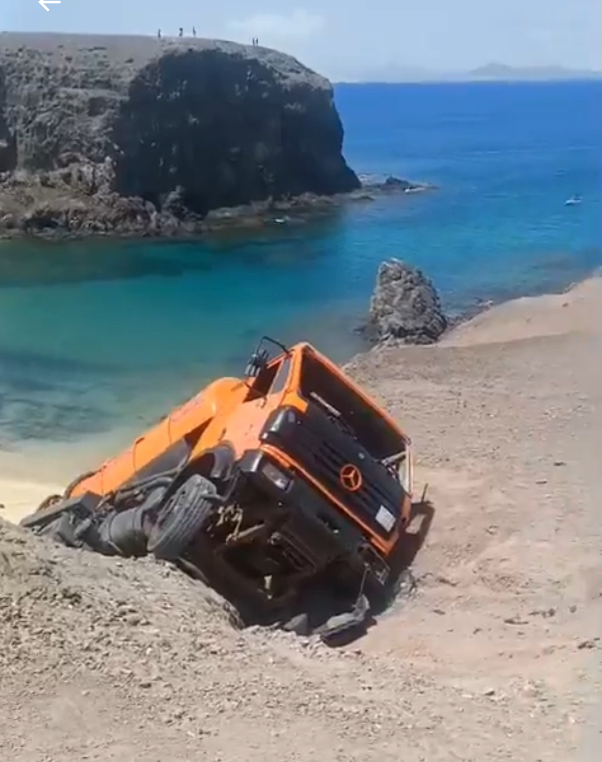 El vehículo, que transportaba aguas fecales y agua limpia, quedó colgado en una zona de difícil acceso. Aunque el conductor resultó ileso, se ordenó el desalojo de los bañistas y el cierre total del entorno como medida de precaución.