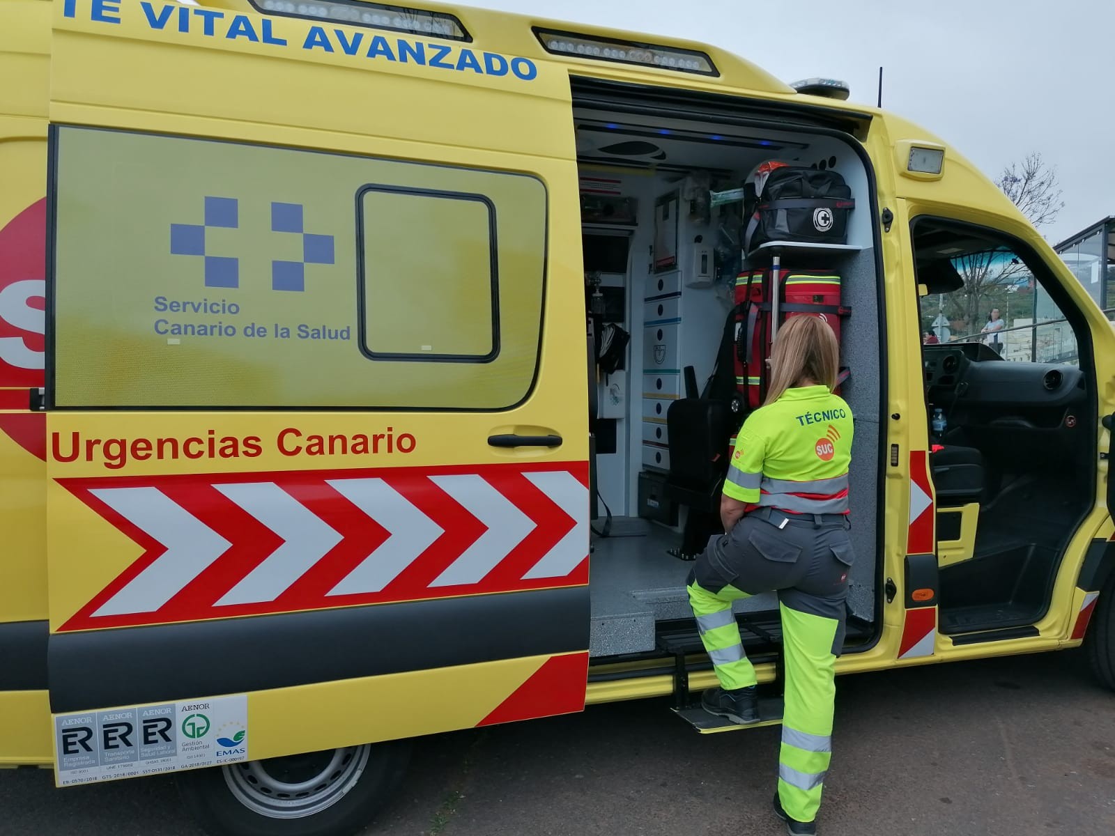 Tras la primera atención, la mujer fue trasladada en una ambulancia medicalizada al Hospital Universitario Nuestra Señora de Candelaria, donde ingresó en estado crítico.
