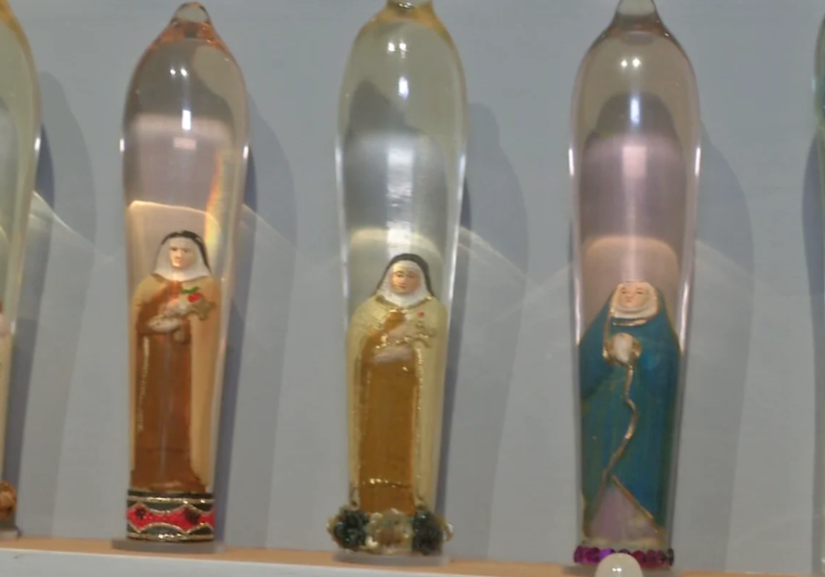 forjados en cristal que recubren las imágenes de Vírgenes, monjas, el Papa y santas, pudiendo